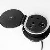 Desk grommet power module designed to provide all the power and connectivity in a modern office.
